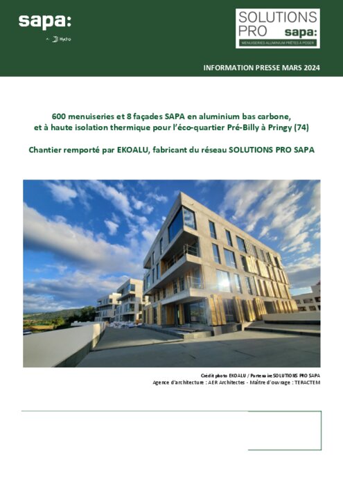 Ekoalu, le fabricant de menuiseries aluminium prêtes à la pose Sapa et membre partenaire du réseau Solutions Pro SAPA, est intervenu sur l’îlot A, imaginé par l’agence AER Architectes et livré fin 2023. En limite sud de la Zac, il se compose de 4 bâtiments tertiaires (R+1 à R+5) implantés en peigne et d’une surface au plancher de 12 400 m². Entre ces plots de bureaux, 800 m² de commerces sont insérés sur les placettes.
