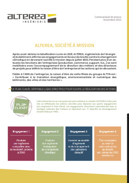 Après avoir obtenu la labellisation Lucie en 2021, ALTEREA, ingénieriste de l’énergie