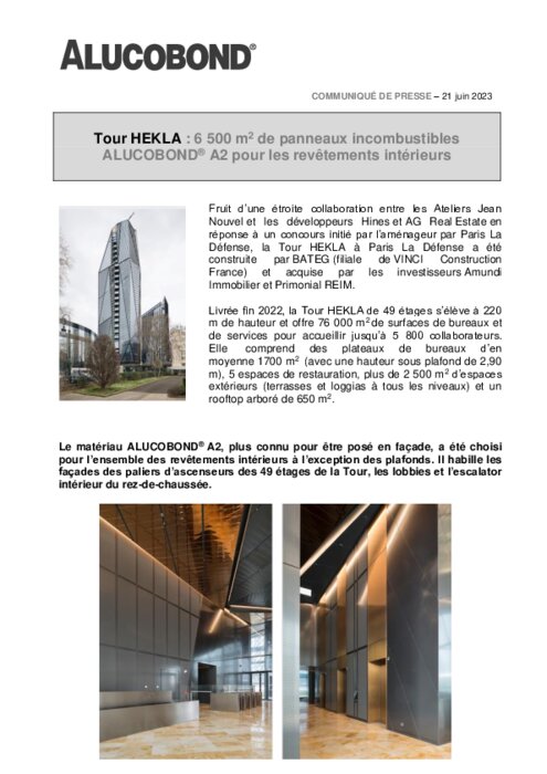 Alucobond habille l'intérieur de la tour Hekla