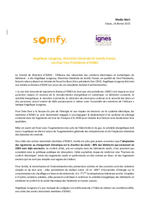 bâtiment - a élu Angélique Longeray, Directrice Générale de Somfy France, en qualité de Vice-Présidente,