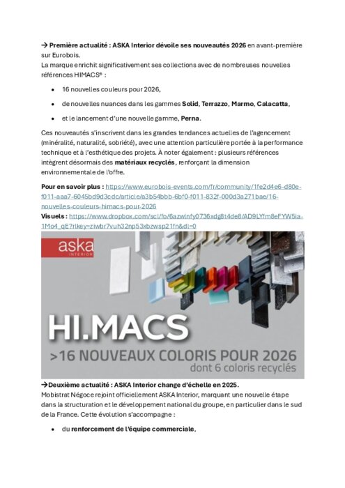 ASKA Interior : nouveautés 2026 et nouvelle dimension industrielle