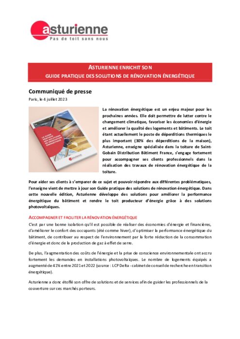 Asturienne enrichit son Guide pratique des solutions de rénovation énergétique