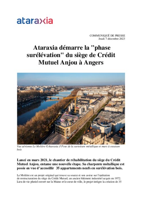 Industriels 07 décembre 2023 - 12:35 Lancé en mars 2021, le chantier de réhabilitation du siège du Crédit Mutuel Anjou, entame une nouvelle étape. Sa charpente métallique est posée en vue d’accueillir 35 appartements neufs en surélévation bois. PDF (481 Ko) Télécharger