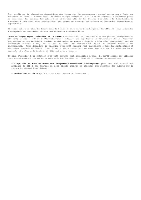 En plus d’appeler à la création d’un prêt garanti vert accessible à tous, la Capeb avance par ailleurs deux autres propositions majeures pour agir concrètement en faveur de la rénovation énergétique...