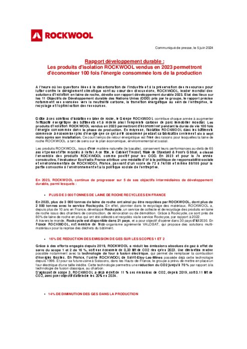 A l’heure où les questions liées à la décarbonation de l’industrie et à la préservation des ressources pour lutter contre le dérèglement climatique sont au cœur des discussions, Rockwool, leader mondial des solutions d’isolation en laine de roche, dévoile son rapport développement durable 2023. Etat des lieux sur les 11 Objectifs de Développement durable des Nations Unies (ODD) pris par le groupe, le rapport précise notamment ses avancées vers la neutralité carbone, la transition énergétique au sein de l’entreprises, le recyclage et l’optimisation des ressources.