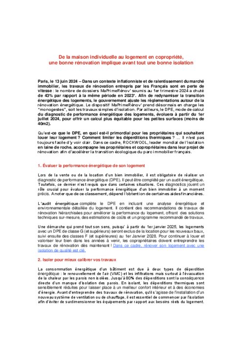 Qu’est-ce que le DPE, en quoi est-il primordial pour les propriétaires qui souhaitent louer leur logement ? Comment limiter les déperditions thermiques ? … Il n’est pas toujours facile d’y voir clair. Dans ce cadre, ROCKWOOL, leader mondial de l’isolation en laine de roche, accompagne les propriétaires et copropriétaires dans leur projet de rénovation afin d’accélérer la transition écologique du parc immobilier français.