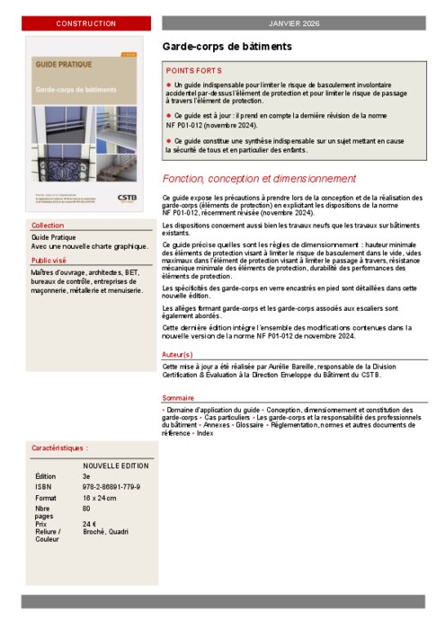 Avis de parution du Guide CSTB "Garde-corps de bâtiments, 3e édition"