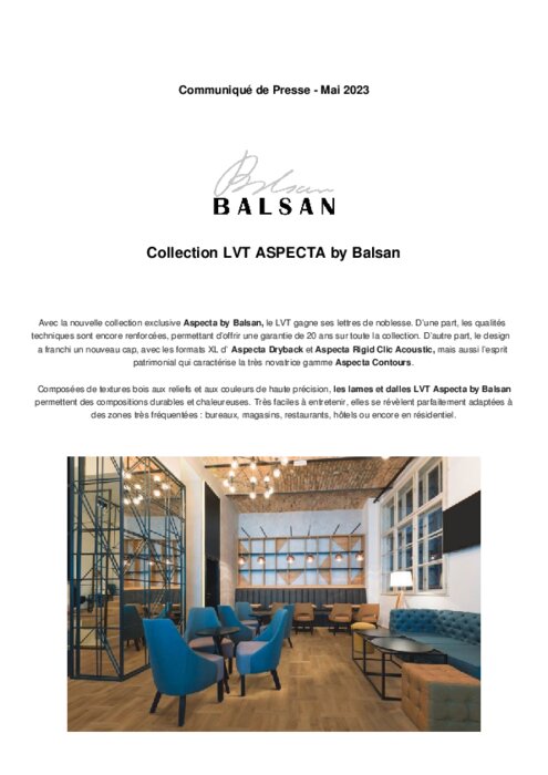 Composées de textures bois aux reliefs et aux couleurs de haute précision, les lames et dalles LVT Aspecta by Balsan permettent des compositions durables et chaleureuses. Très faciles à entretenir, elles se révèlent parfaitement adaptées à des zones très fréquentées : bureaux, magasins, restaurants, hôtels ou encore en résidentiel.