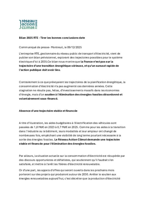 L’entreprise RTE, gestionnaire du réseau public de transport d’électricité, vient de publier son bilan prévisionnel, explorant des trajectoires possibles pour le système électrique d’ici à 2035.Ce bilan nous montre que la France n’est pas sur la trajectoire d’une transition énergétique sérieuse, et qu’un sursaut rapide de l’action publique doit avoir lieu.