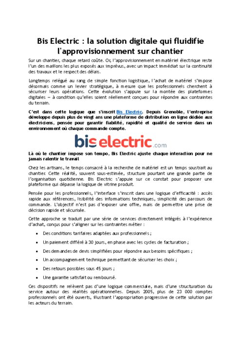 Bis Electric : la solution digitale qui fluidifie l'approvisionnement sur chantier
