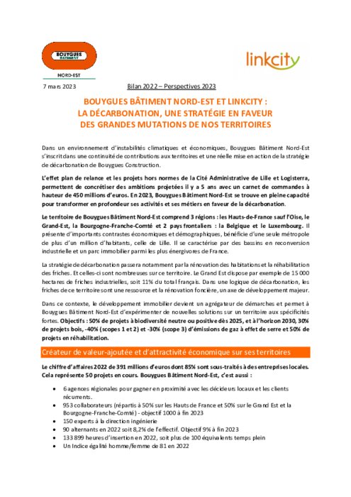 Bouygues Bâtiment Nord-Est et Linkcity s'engagent pour la décarbonation