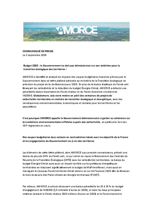 Budget 2025 : Amorce alerte le gouvernement sur la transition écologique des territoires