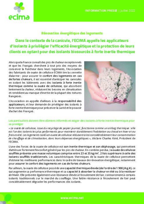 des fabricants de ouate de cellulose ECIMA tire la sonnette