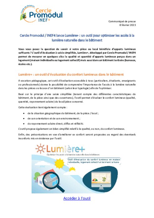 Cercle Promodul / INEF4 lance un outil pour optimiser les accès à la lumière naturelle dans le bâtiment
