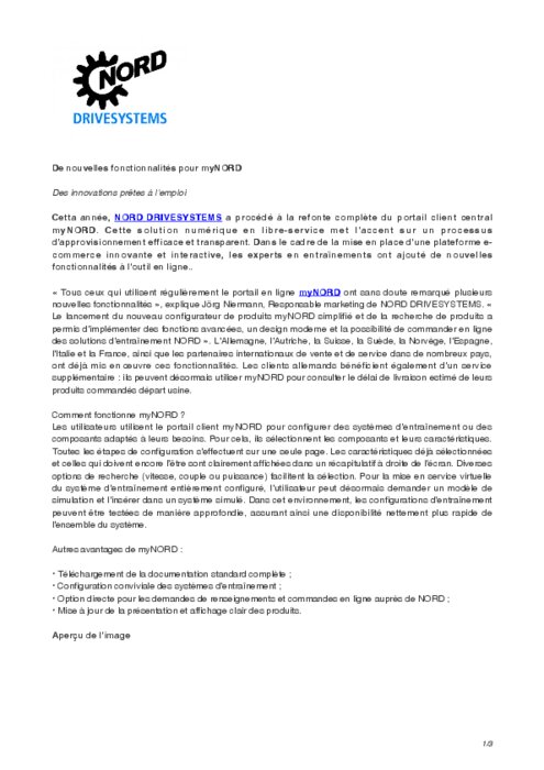 Cette année, NORD Drivesystems a entièrement repensé son portail client central, myNORD. Cette solution numérique en libre-service met désormais l’accent sur un processus d’approvisionnement plus efficace et transparent. Dans le cadre du déploiement d’une plateforme e-commerce innovante et interactive, les spécialistes des systèmes d’entraînement ont également intégré de nouvelles fonctionnalités à l’outil en ligne.