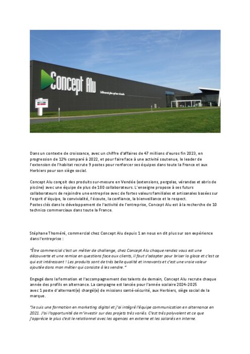 Dans un contexte de croissance, avec un chiffre d'affaires de 47 millions d'euros fin 2023, en progression de 12% comparé à 2022, et pour faire face à une activité soutenue, le leader de l’extension de l’habitat recrute 9 postes pour renforcer ses équipes dans toute la France et aux Herbiers pour son siège social.