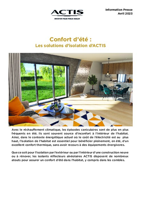 Industriels 06 avril 2023 - 15:09 Que ce soit pour l’isolation par l’extérieur ou par l’intérieur d’une construction neuve ou à rénover, les isolants réflecteurs alvéolaires Actis disposent de nombreux atouts pour assurer un confort d’été dans l’habitat, y compris dans les combles. PDF (3 Mo) Télécharger