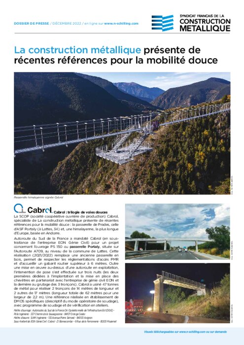 Institutionnels 08 décembre 2022 - 13:28 Au programme, un tour d'horizon de références entre passerelle himalayenne, passerelles pour le franchissements d'autoroutes, de cours d'eau et de fleuves ou encore passerelle esthétique pour la rénovation d'une célèbre gare parisienne... PDF (484 Ko) Télécharger