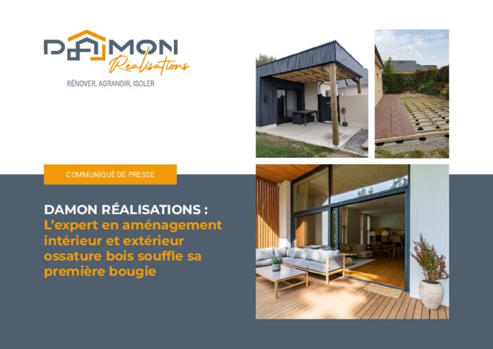 Damon Réalisations propose une gamme complète de services destinés à transformer et à embellir l’espace de vie de ses clients. Spécialisé en aménagement intérieur et extérieur ossature bois, l'artisan fête cette année son premier anniversaire.