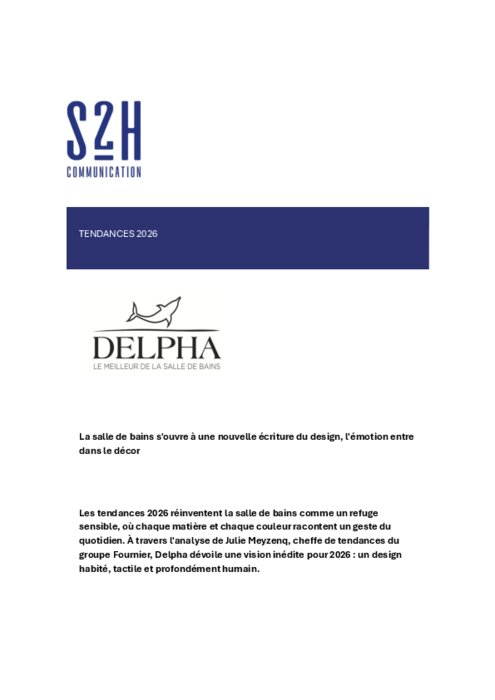 Les tendances 2026 réinventent la salle de bains comme un refuge sensible, où chaque matière et chaque couleur racontent un geste du quotidien. À travers l'analyse de Julie Meyzenq, cheffe de tendances du groupe Fournier, Delpha dévoile une vision inédite pour 2026 : un design habité, tactile et profondément humain.