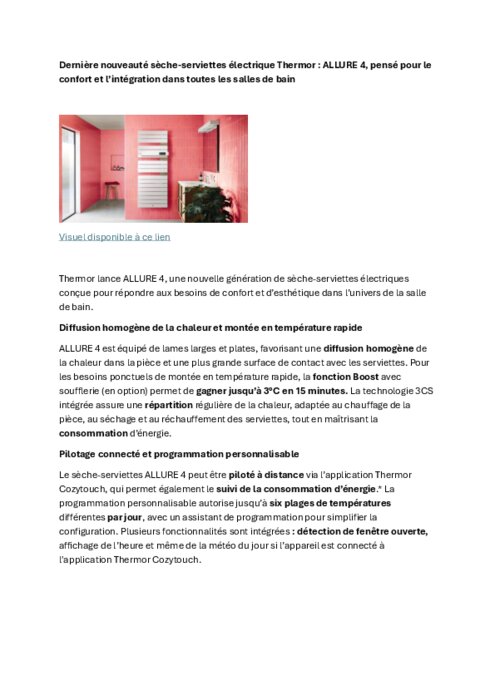 ALLURE 4 est équipé de lames larges et plates, favorisant une diffusion homogène de la chaleur dans la pièce et une plus grande surface de contact avec les serviettes. Pour les besoins ponctuels de montée en température rapide, la fonction Boost avec soufflerie (en option) permet de gagner jusqu’à 3°C en 15 minutes. La technologie 3CS intégrée assure une répartition régulière de la chaleur, adaptée au chauffage de la pièce, au séchage et au réchauffement des serviettes, tout en maîtrisant la consommation d’énergie.