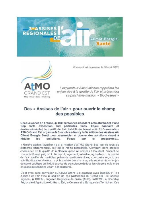 Chaque année en France, 40 000 personnes décèdent prématurément d’une trop forte exposition aux particules fines. Enjeu sanitaire et environnemental, la qualité de l’air est-elle en bonne voie ? L’association ATMO Grand Est organise le 5 octobre à Nancy la 3e édition des Assises Air Climat Energie Santé pour rassembler et donner des solutions visant à réduire les pollutions. Focus sur le programme…