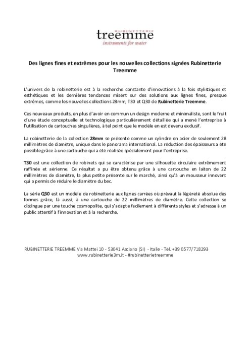 L’univers de la robinetterie est à la recherche constante d’innovations à la fois stylistiques et esthétiques et les dernières tendances misent sur des solutions aux lignes fines, presque extrêmes, comme les nouvelles collections 28mm, T30 et Q30 de Rubinetterie Treemme.