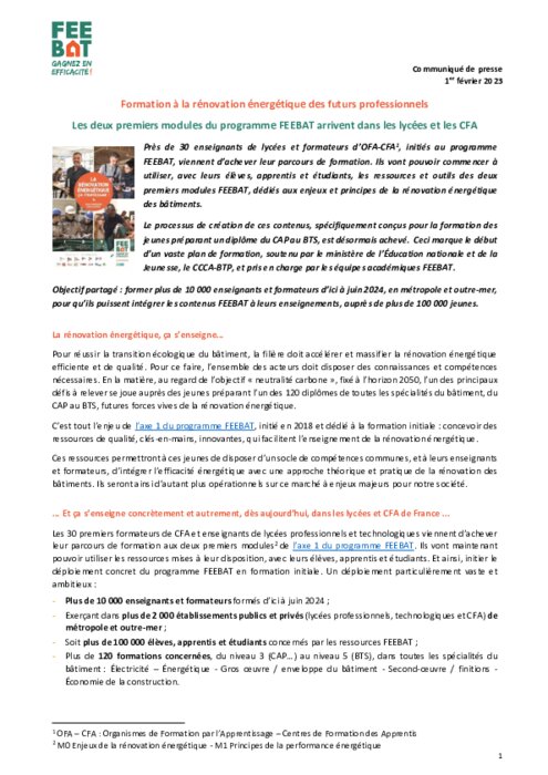 Près de 30 enseignants de lycées et formateurs d’OFA-CFA, initiés au programme FEEBAT, viennent d’achever leur parcours de formation. Ils vont pouvoir commencer à utiliser, avec leurs élèves, apprentis et étudiants, les ressources et outils des deux premiers modules FEEBAT, dédiés aux enjeux et principes de la rénovation énergétique des bâtiments.