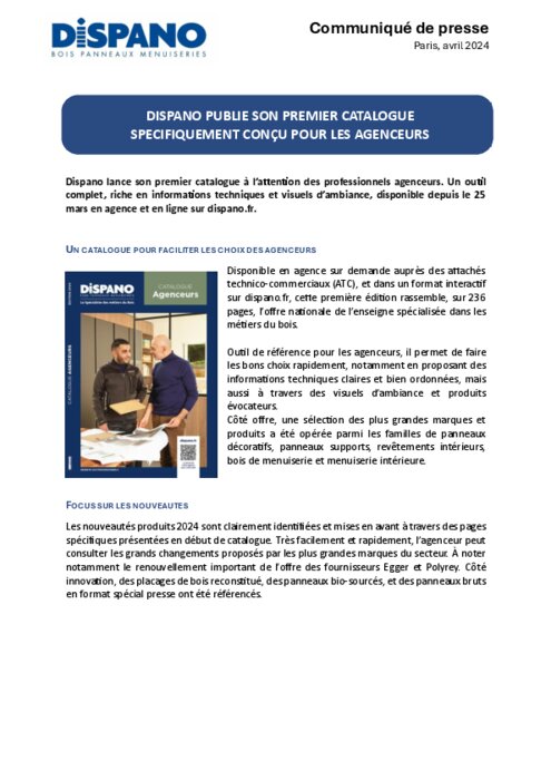 Industriels 09 avril 2024 - 10:21 Dispano lance son premier catalogue à l’attention des professionnels agenceurs. Un outil complet, riche en informations techniques et visuels d’ambiance, disponible depuis le 25 mars en agence et en ligne sur dispano.fr. PDF (236 Ko) Télécharger