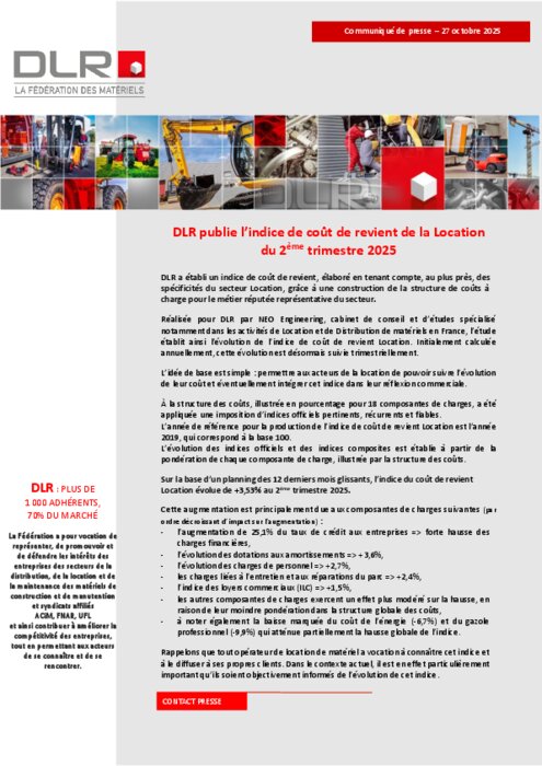 DLR publie l’indice de coût de revient de la Location du 2e trimestre 2025