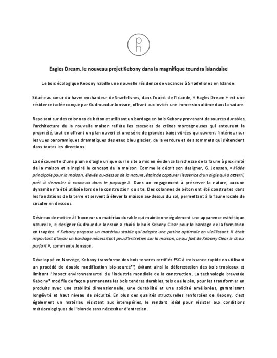 Le bois écologique Kebony habille une nouvelle résidence de vacances à Snæfellsnes en Islande. Située au cœur du havre enchanteur de Snæfellsnes, dans l'ouest de l'Islande, « Eagles Dream » est une résidence isolée conçue par Gudmundur Jonsson, offrant aux invités une immersion ultime dans la nature.