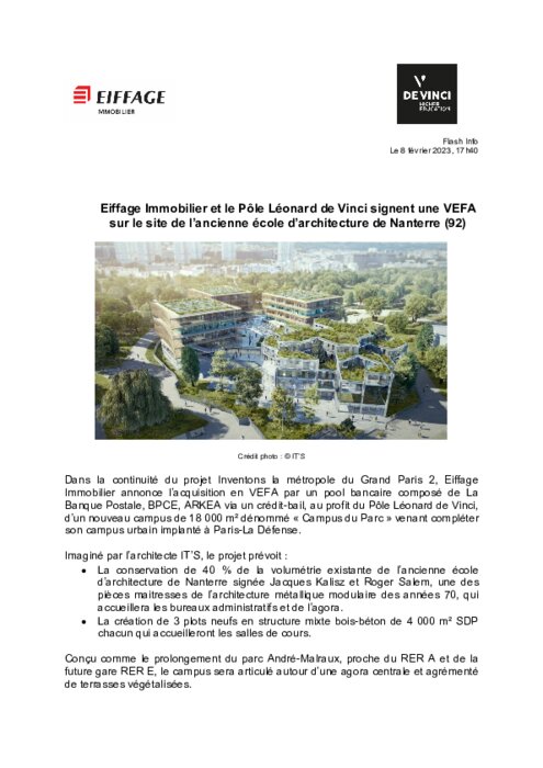 Banque Postale, BPCE, ARKEA via un crédit-bail, au profit du Pôle Léonard de Vinci,