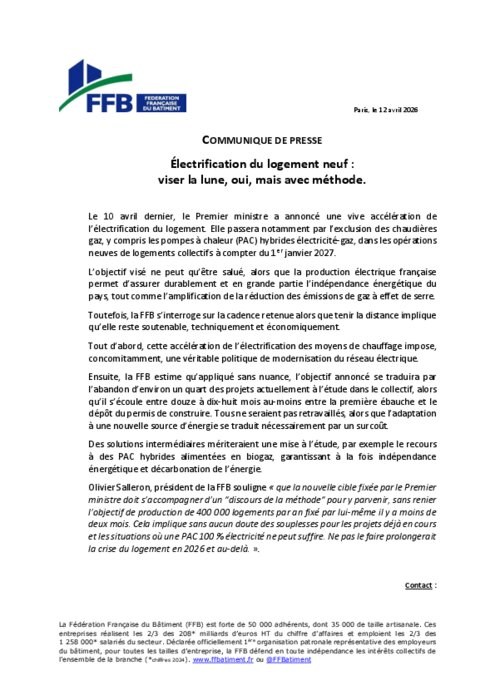 Électrification du logement neuf : Réaction FFB