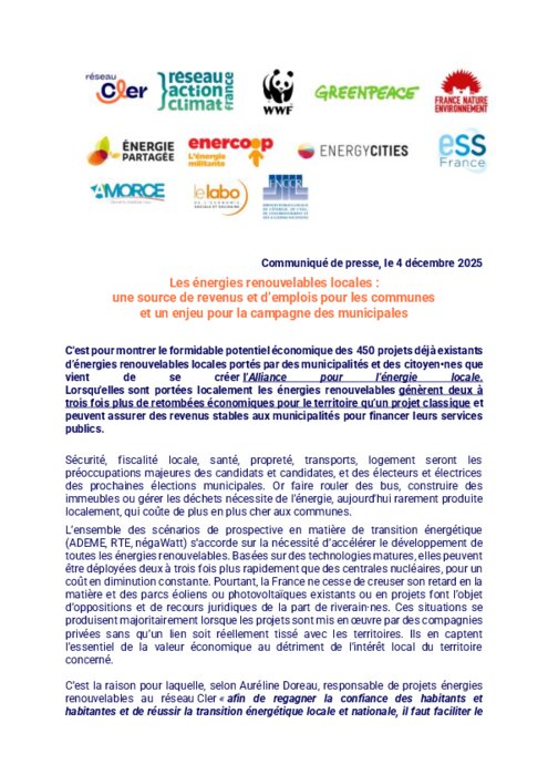 C'est pour montrer le formidable potentiel économique des 450 projets déjà existants d’énergies renouvelables locales portés par des municipalités et des citoyen(ne)s que vient de se créer l’Alliance pour l’énergie locale.