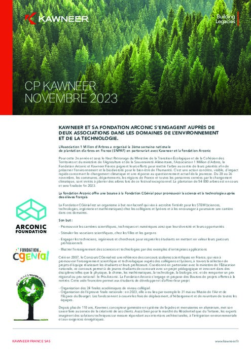 Fondation Arconic et Kawneer France joignent leurs efforts pour mettre l’arbre au centre de leurs priorités afin de