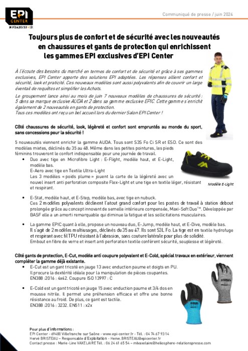 EPI Center avait annoncé un enrichissement de ses gammes exclusives lors de son Salon en mars dernier. Les nouveaux modèles de chaussures de sécurité et de gants de protection sont désormais disponibles dans les points de vente du groupement.