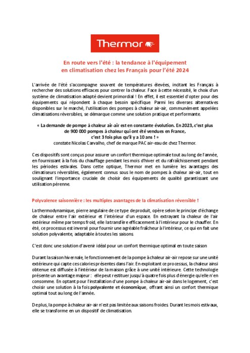 Été 2024 : Les Français optent pour la climatisation (décryptage Thermor)