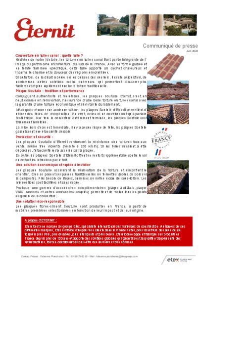 Conjuguant authenticité et résistance, les plaques Soutuile Eternit, c’est, en neuf comme en rénovation, l’assurance d’une belle toiture en tuiles canal avec la garantie d’une toiture économique et résistante durablement.