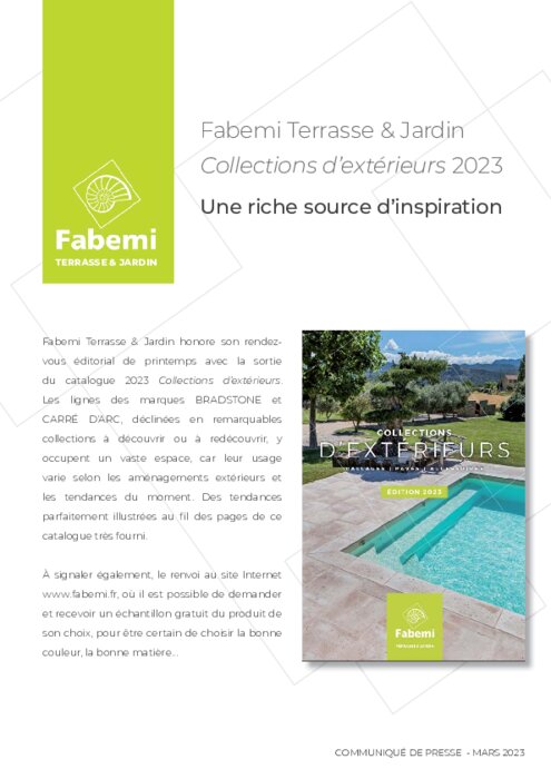 Industriels 15 mars 2023 - 08:57 Les lignes des marques BRADSTONE et CARRÉ D’ARC, déclinées en remarquables collections à découvrir ou à redécouvrir, y occupent un vaste espace, car leur usage varie selon les aménagements extérieurs et les tendances du moment. PDF (590 Ko) Télécharger