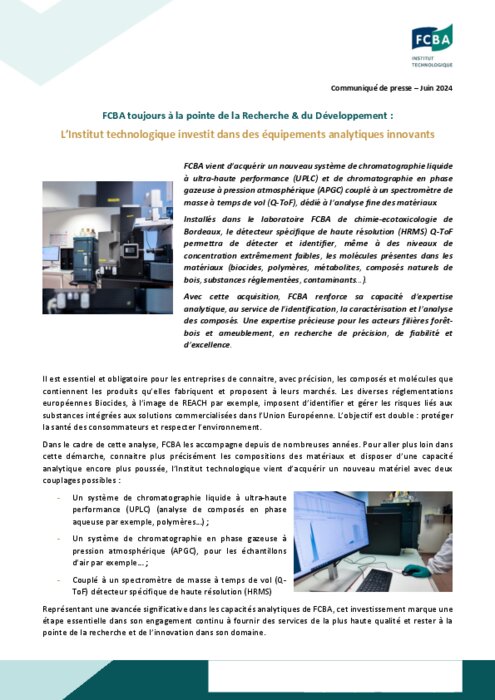 FCBA investit dans des équipements analytiques innovants