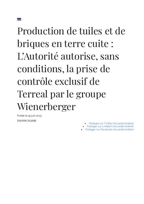 Après avoir examiné les effets potentiels de l’opération sur les marchés de la fabrication de tuiles en terre cuite et sur les marchés de la construction de matériaux de construction de murs porteurs, l’Autorité relève que l’opération n’est pas de nature à porter atteinte à la concurrence et autorise l’opération, sans conditions.