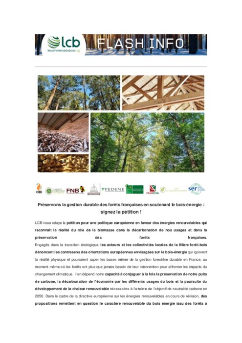 LCB relaye la pétition pour une politique européenne en faveur des énergies renouvelables qui reconnaît la réalité du rôle de la biomasse dans la décarbonation de nos usages et dans la préservation des forêts françaises.