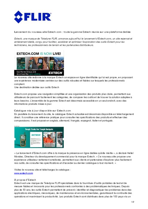 FLIR, Lancement du nouveau site Extech.com