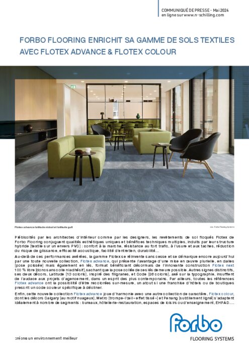 Plébiscités par les architectes d’intérieur comme par les designers, les revêtements de sol floqués Flotex de Forbo Flooring conjuguent qualités esthétiques uniques et bénéfices techniques multiples, induits par leur structure