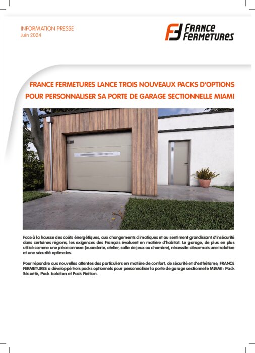 FERMETURES a développé trois packs optionnels pour personnaliser la porte de garage sectionnelle MIAMI : Pack