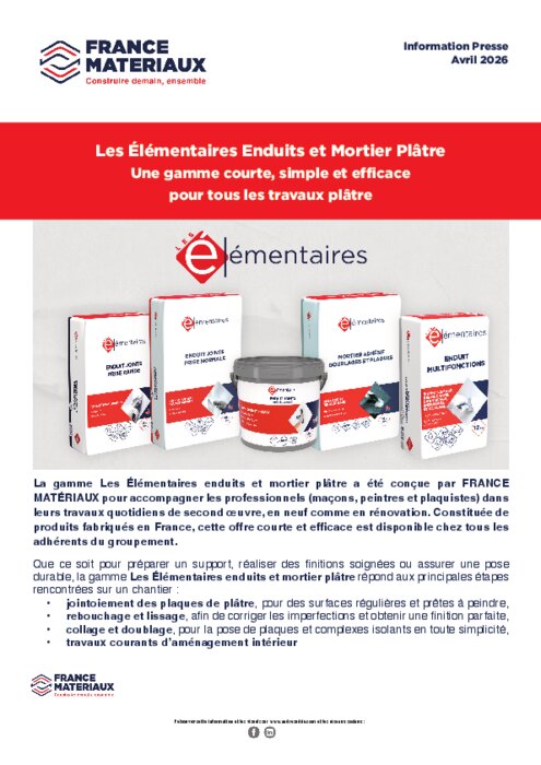 France Matériaux lance une nouvelle gamme "Les Élémentaires" Enduits & Plâtre