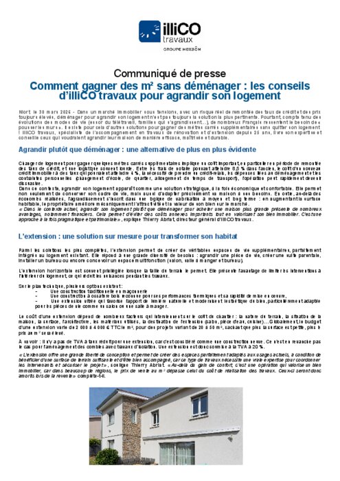 Changer de logement pour gagner quelques mètres carrés supplémentaires implique un coût important, en particulier en période de remontée des taux de crédit, et une logistique souvent lourde. Entre les frais de notaire pouvant atteindre 8,5 % dans l’ancien, le coût d’un nouveau crédit immobilier à des taux qui pourraient atteindre 4 %, la nécessité de prendre un crédit-relais, les dépenses liées au déménagement et les contraintes personnelles (changement d’école, de quartier, allongement du temps de transport), l’opération peut rapidement devenir dissuasive.