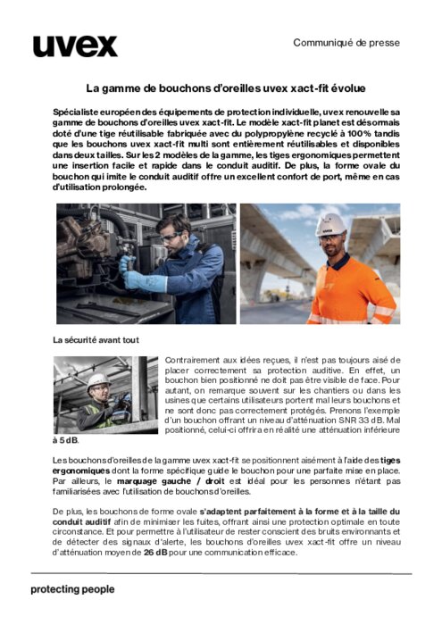 Spécialiste européen des équipements de protection individuelle, uvex renouvelle sa gamme de bouchons d’oreilles uvex xact-fit. Le modèle xact-fit planet est désormais doté d’une tige réutilisable fabriquée avec du polypropylène recyclé à 100% tandis que les bouchons uvex xact-fit multi sont entièrement réutilisables et disponibles dans deux tailles. Sur les 2 modèles de la gamme, les tiges ergonomiques permettent une insertion facile et rapide dans le conduit auditif.