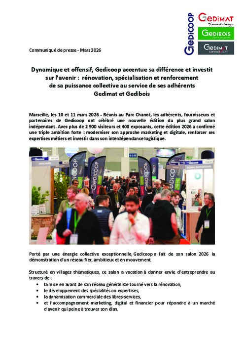 Réunis au Parc Chanot, à Marseille, les adhérents, fournisseurs et partenaires de Gedicoop ont célébré une nouvelle édition du plus grand salon indépendant. Avec plus de 2 900 visiteurs et 400 exposants, cette édition 2026 a confirmé une triple ambition forte : moderniser son approche marketing et digitale, renforcer ses expertises métiers et investir dans son interdépendance logistique.