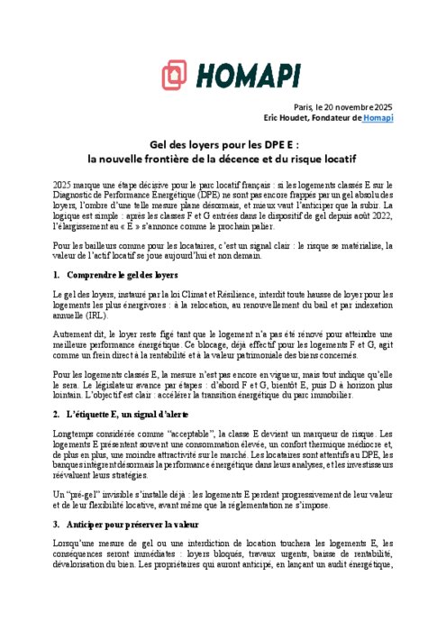 2025 marque une étape décisive pour le parc locatif français : si les logements classés E sur le Diagnostic de Performance Énergétique (DPE) ne sont pas encore frappés par un gel absolu des loyers, l’ombre d’une telle mesure plane désormais, et mieux vaut l’anticiper que la subir. La logique est simple : après les classes F et G entrées dans le dispositif de gel depuis août 2022, l’élargissement au « E » s’annonce comme le prochain palier.